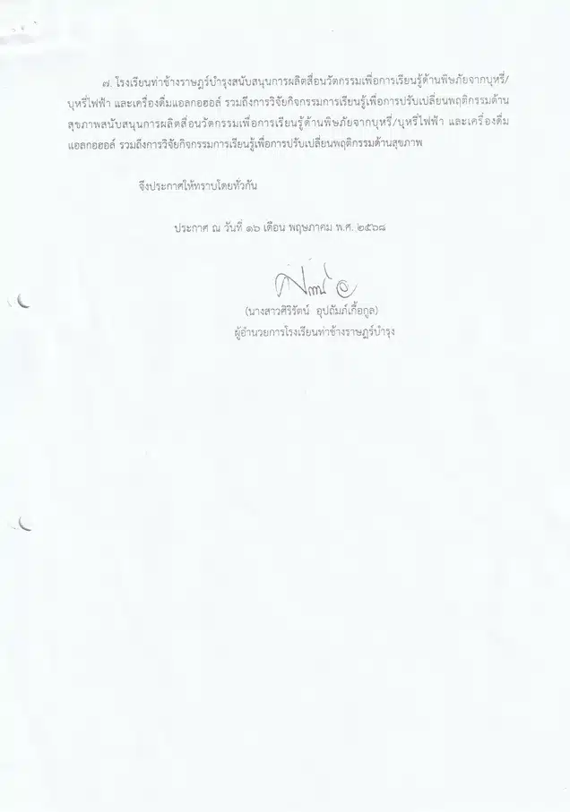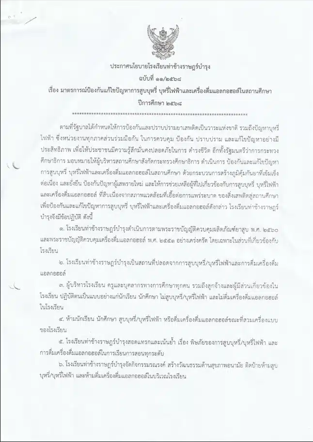 ประกาศนโยบาย เรื่อง มาตรการณ์ป้องกันแก้ไขปัญหาการสูบบุหรี่ บุหรี่ไฟฟ้าและเครื่องดื่มแอลกอฮอล์ในสถานศึกษา ปีการศึกษา 2568By thachang / June 1, 2025